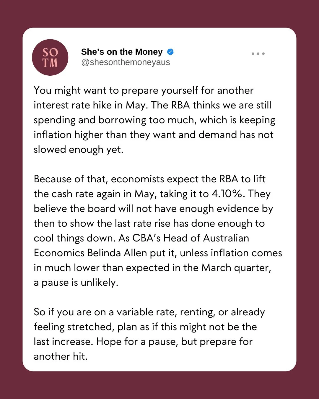She's On The Money makes money complexity, simple; so you can enjoy the financial fruits of your labour, without furrowing a perfectly-manicured brow. We’re talking: debt-free, financial independence, portfolios and prosperity – regardless of your background or current sitch.